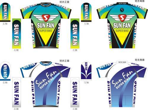 上方-車衣款各具特色歡迎訂購. 昇華轉印車衣色彩鮮豔涼爽透氣提高安全度